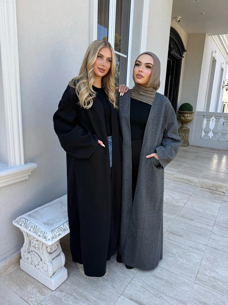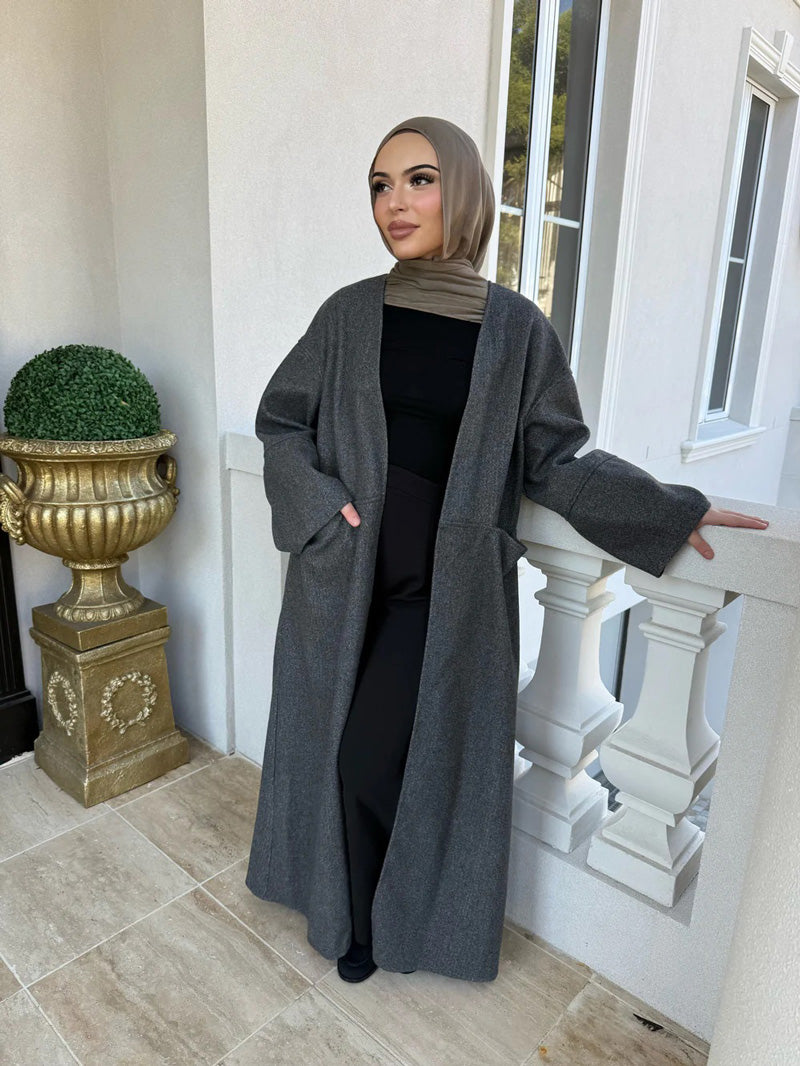 The Mom Pocket Open Abaya is made from thick soft fabric with an oversized fit for all-day comfort and modest style. It features wide sleeves for easy movement and big pockets for practical everyday use. A perfect blend of comfort and functionality for daily wear.
